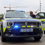 Električnemu Renault 4 je uspelo ohraniti prikupno zunanjost celo kljub izdatni preobrazbi v patruljne barve in oznake. Ob predaji, kjer je šla kartica za prostoročno upravljanje vozila iz rok Petra Nevistića, generalnega direktorja zastopnika