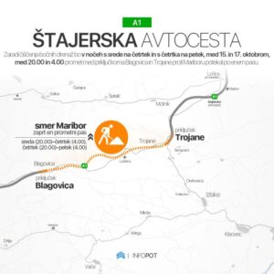 Zaradi čiščenja bočnih drenaž bo v nočeh s srede na četrtek in s četrtka na petek, med 15. in 17. oktobrom, med 20. in 4. uro promet med priključkoma Blagovica ...
