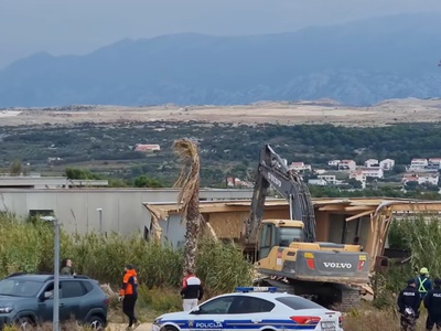 Veliko rušenje na hrvaški obali se je začelo. Z bagri nad 124 objektov, tudi hiše z bazeni. |